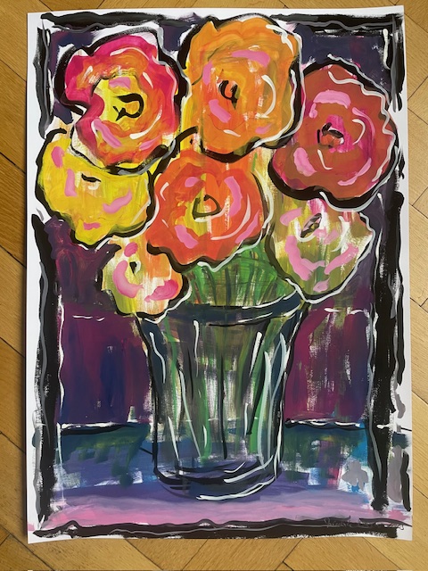 Flowers in Bloom 2025 Gouache auf Fotokarton (Unikat) Maß: ca. 50 x 70 cm (Haegeumgang Museum South Korea)